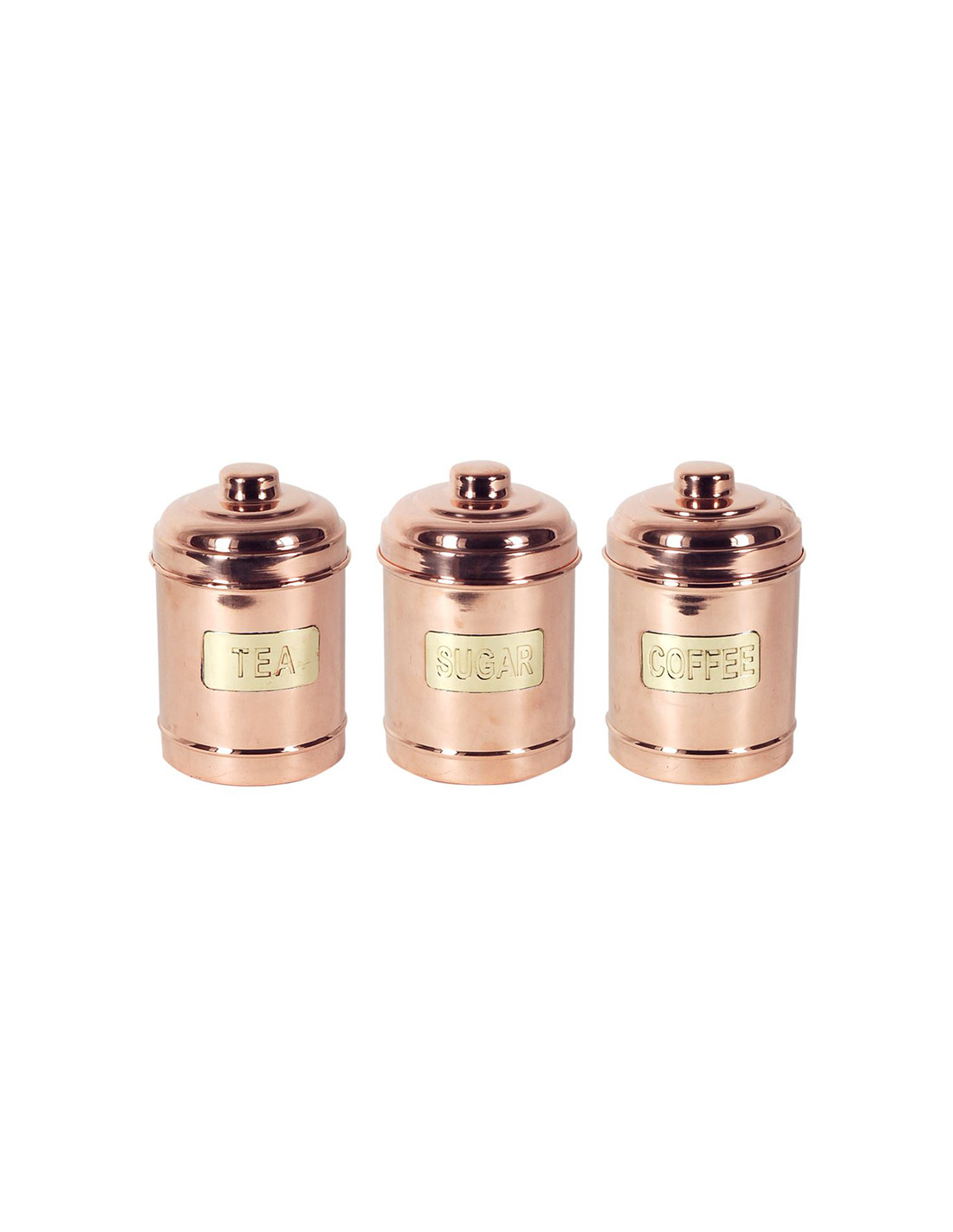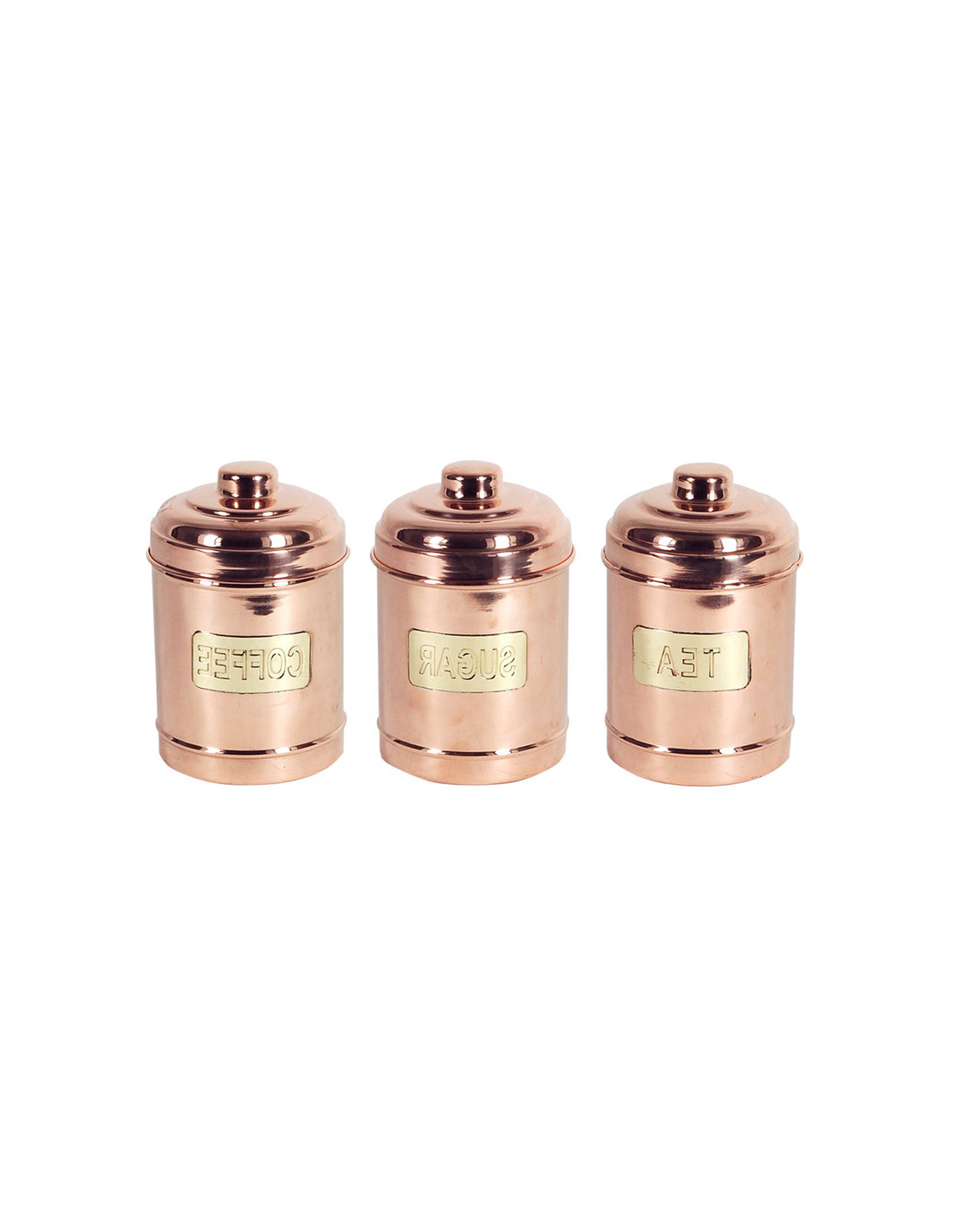Pots de llautó amb inscripcions gravades (Tea, Sugar, Coffee). Capacitat: 1 litre. Mides: 10x10x16 cm. Compra individual o en joc de tres. Ideals per organitzar la teva cuina amb un toc vintage i funcional.