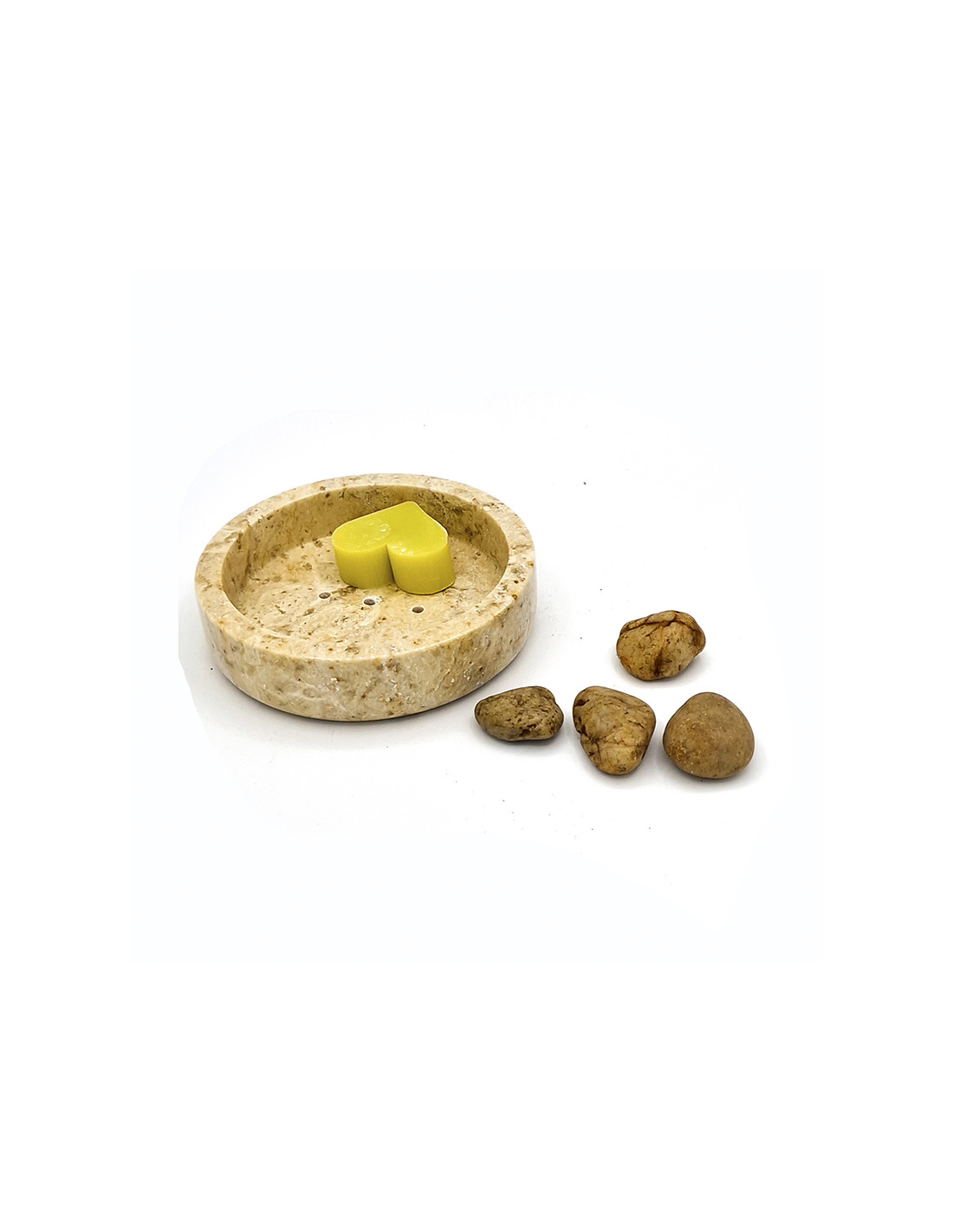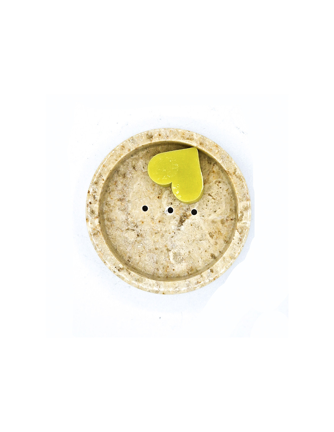Esta jabonera redonda de mármol es una opción elegante y sostenible para colocar tu jabón en el baño o la ducha.