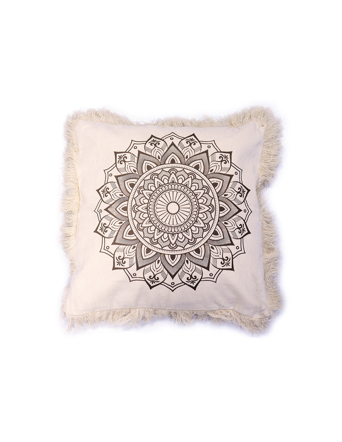 La funda de cojín MANDALA de SINUSUAL aporta un aire sereno y bohemio. Confeccionada en 100% algodón y un diseño de mandala que ocupa la parte delantera, combina la suavidad de los materiales naturales con un estampado que invita a la relajación. Perfecta para realzar la decoración de tu sala o dormitorio. Ideal si apuestas por productos eco friendly.