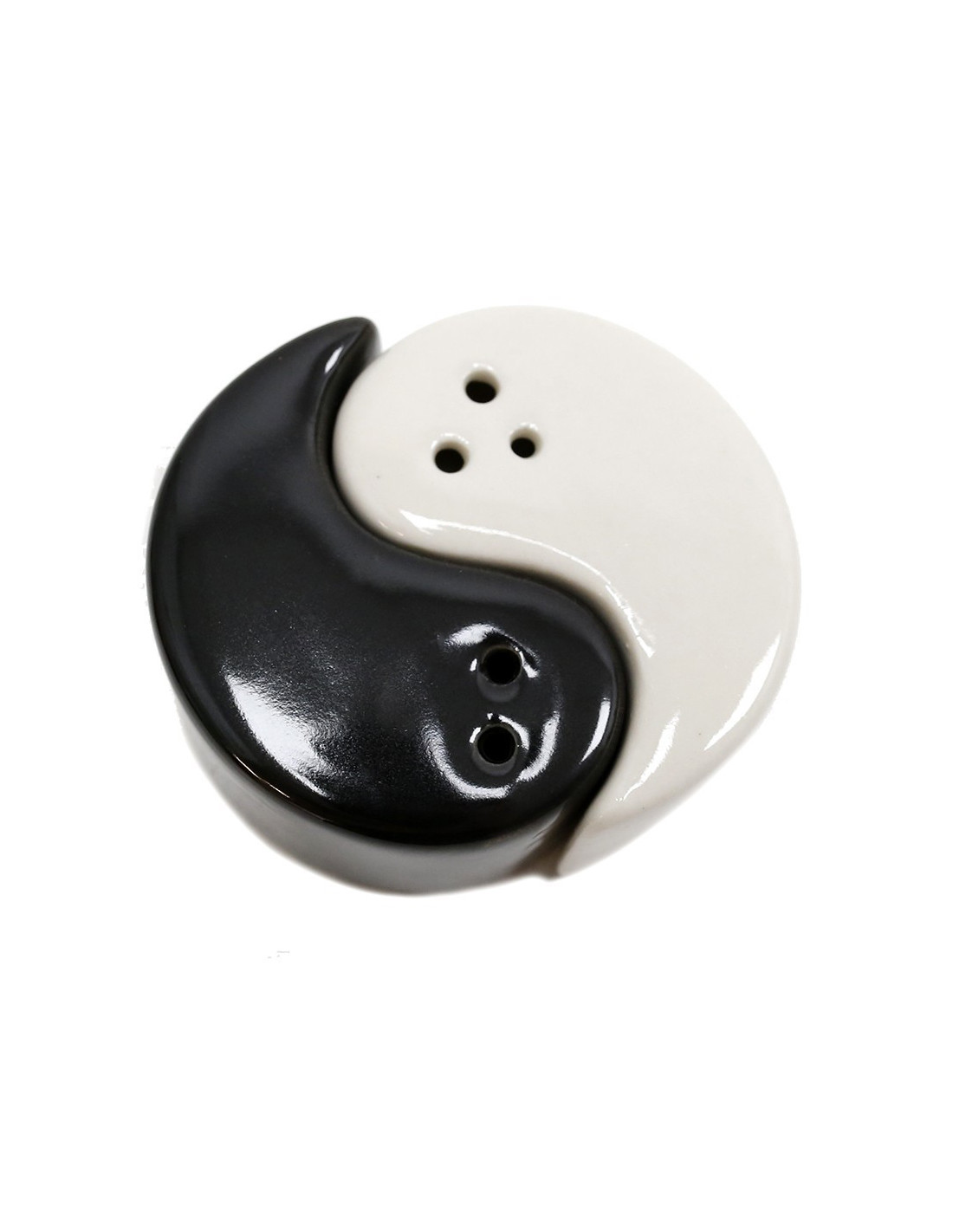 Este juego de salero y pimentero de cerámica combina diseño y simbolismo. Formando el ying y el yang al unirse, esta pieza aporta un toque simbólico y original a tu cocina.
