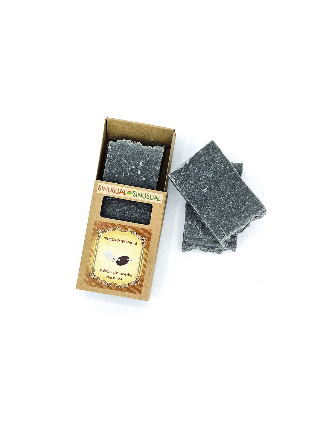 Este jabón artesanal está especialmente formulado para áreas que requieren mayor renovación celular (pies, codos o rodillas). La piedra pómez molida actúa como exfoliante físico eficaz, mientras el aceite de oliva repara y suaviza la piel.