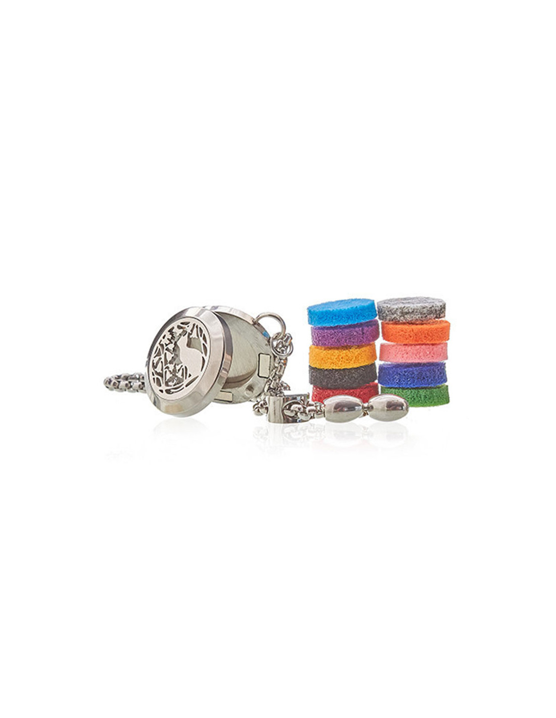 Ligera y cómoda, esta pulsera está pensada para quienes buscan llevar consigo la tranquilidad de la aromaterapia de una forma original y práctica. Su diseño, con un encantador gato entre flores, es un guiño para los amantes de los felinos. Basta con colocar unas gotas de aceite esencial en las almohadillas para disfrutar de aromas revitalizantes o relajantes, según lo que necesites. Las almohadillas, en colores variados, son lavables y reutilizables, haciendo de este accesorio una opción respetuosa con el medio ambiente.