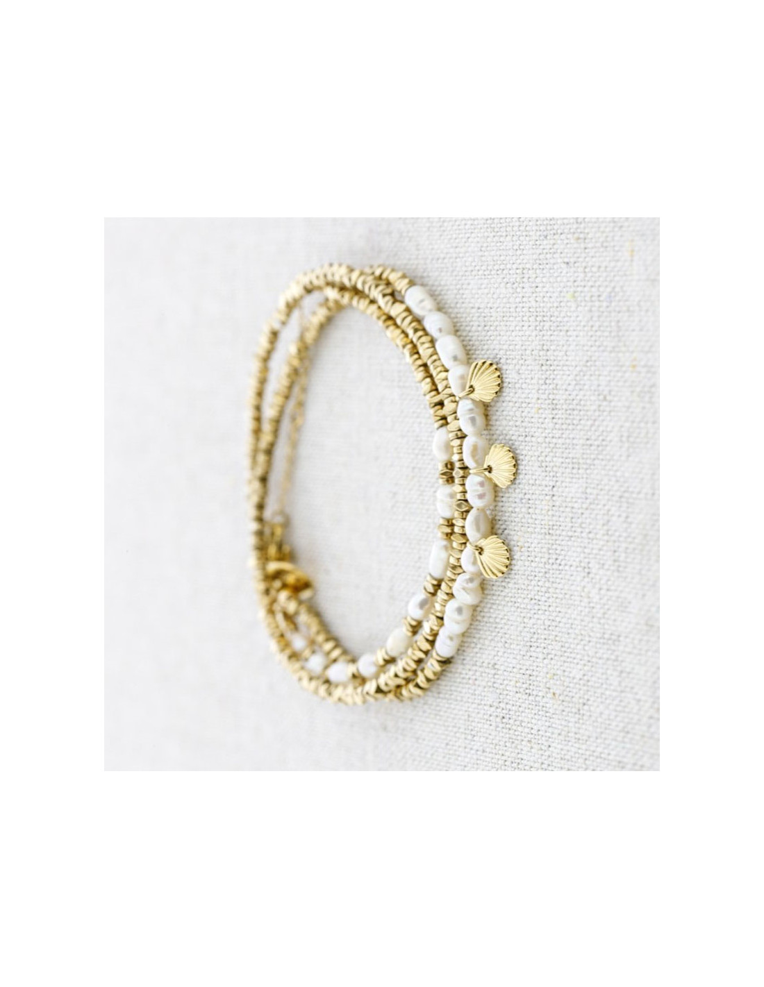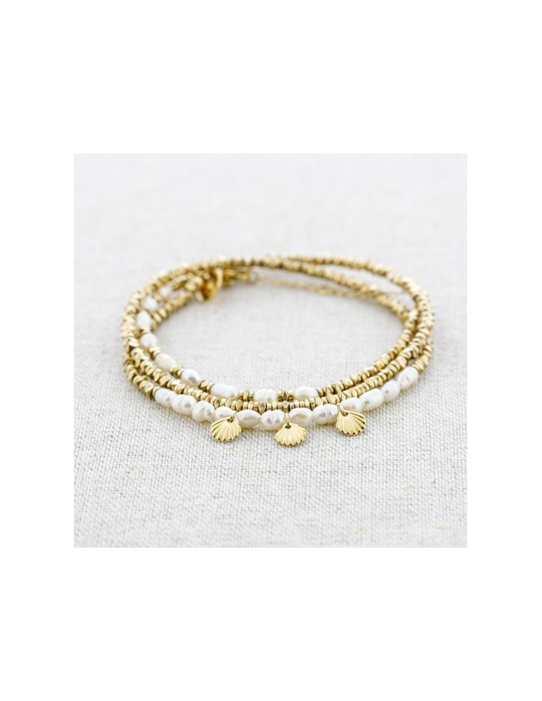 Pulsera acero 3 vueltas piedras y conchas QUASI
