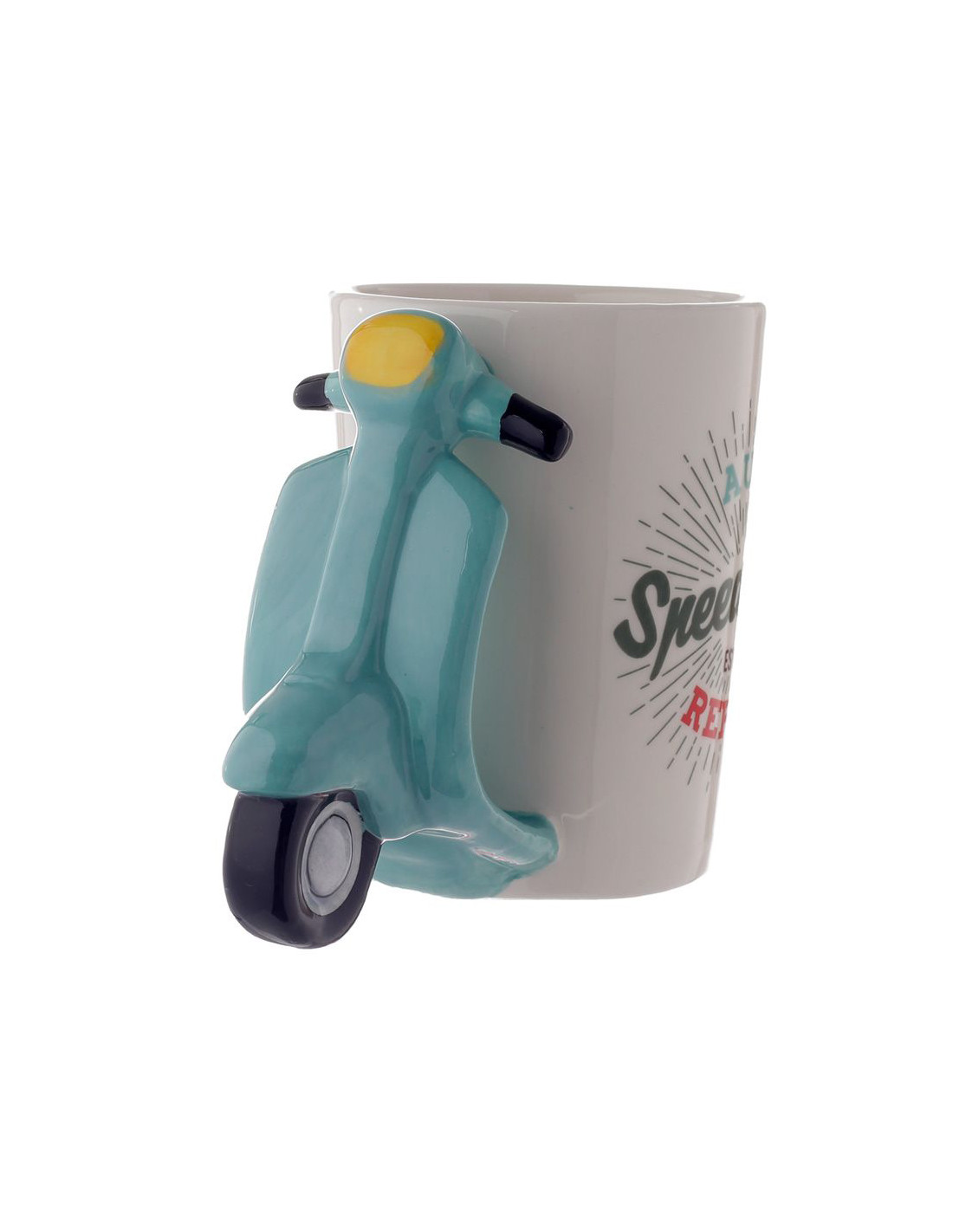 Es el accesorio ideal para quienes buscan una pieza única y llena de personalidad. Su asa en forma de scooter en un alegre azul claro evoca la nostalgia del diseño clásico. Con una capacidad de 400 ml, esta taza es ideal para disfrutar de grandes dosis de café o té en cualquier momento del día.