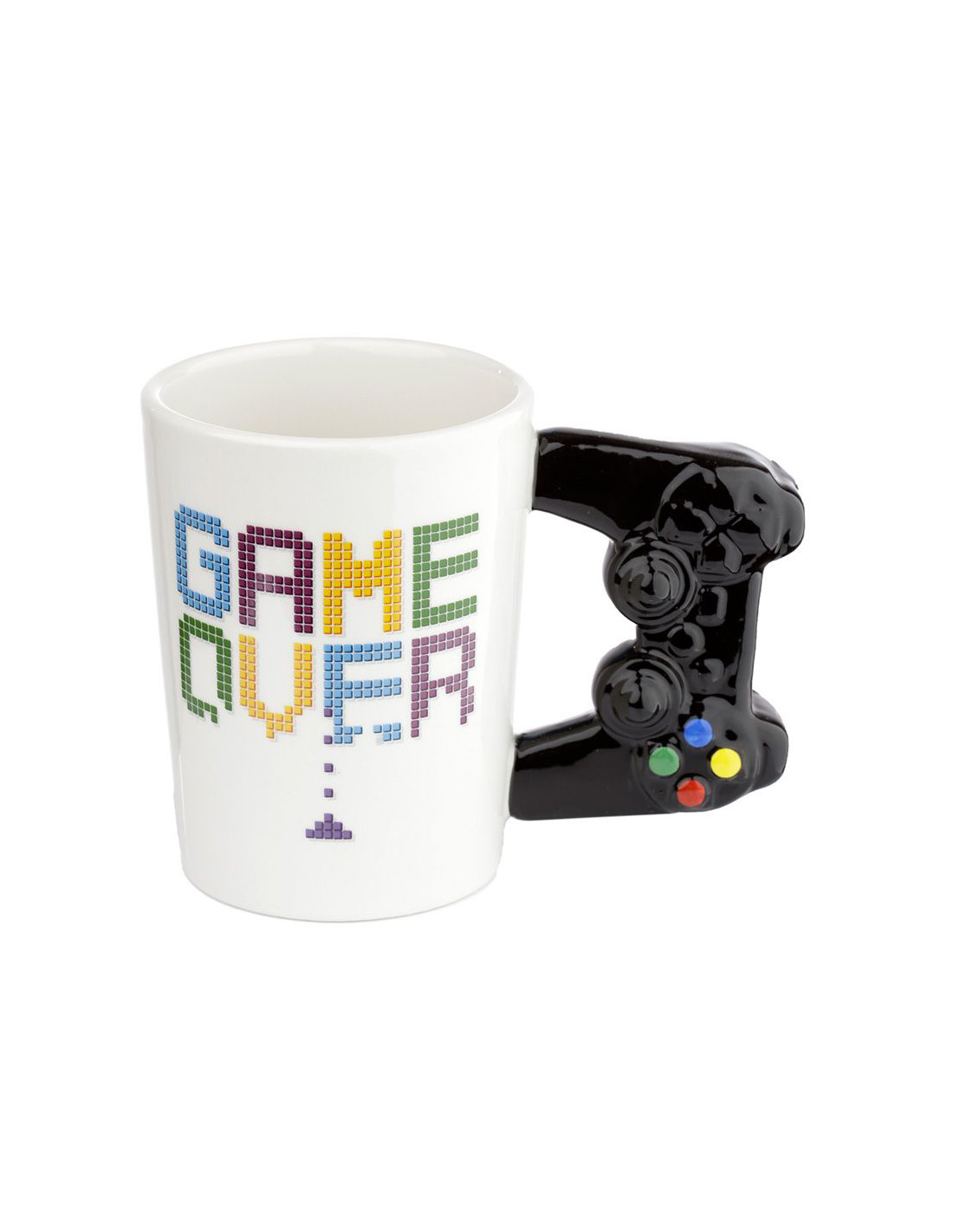 Es el complemento perfecto para los amantes de los videojuegos clásicos. Con un asa en forma de mando clásico y una tipografía retro gaming que dice "GAME OVER", esta taza de cerámica de 400 ml es ideal para quienes aman los videojuegos y buscan un toque de nostalgia en sus momentos de café o té