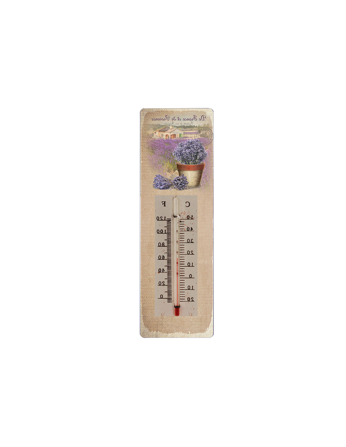 Dale a tu espacio un toque nostálgico con el Termómetro Decorativo Vintage Lavanda de SINUSUAL. Experimenta la elegancia vintage con este adorno funcional.